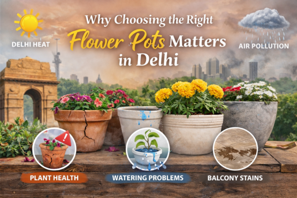 Living in Delhi means dealing with extreme summers, dusty air, changing humidity, and compact living spaces. Whether you stay in an apartment, builder floor, or rented home, choosing the right flower pots is more important than most people realize.